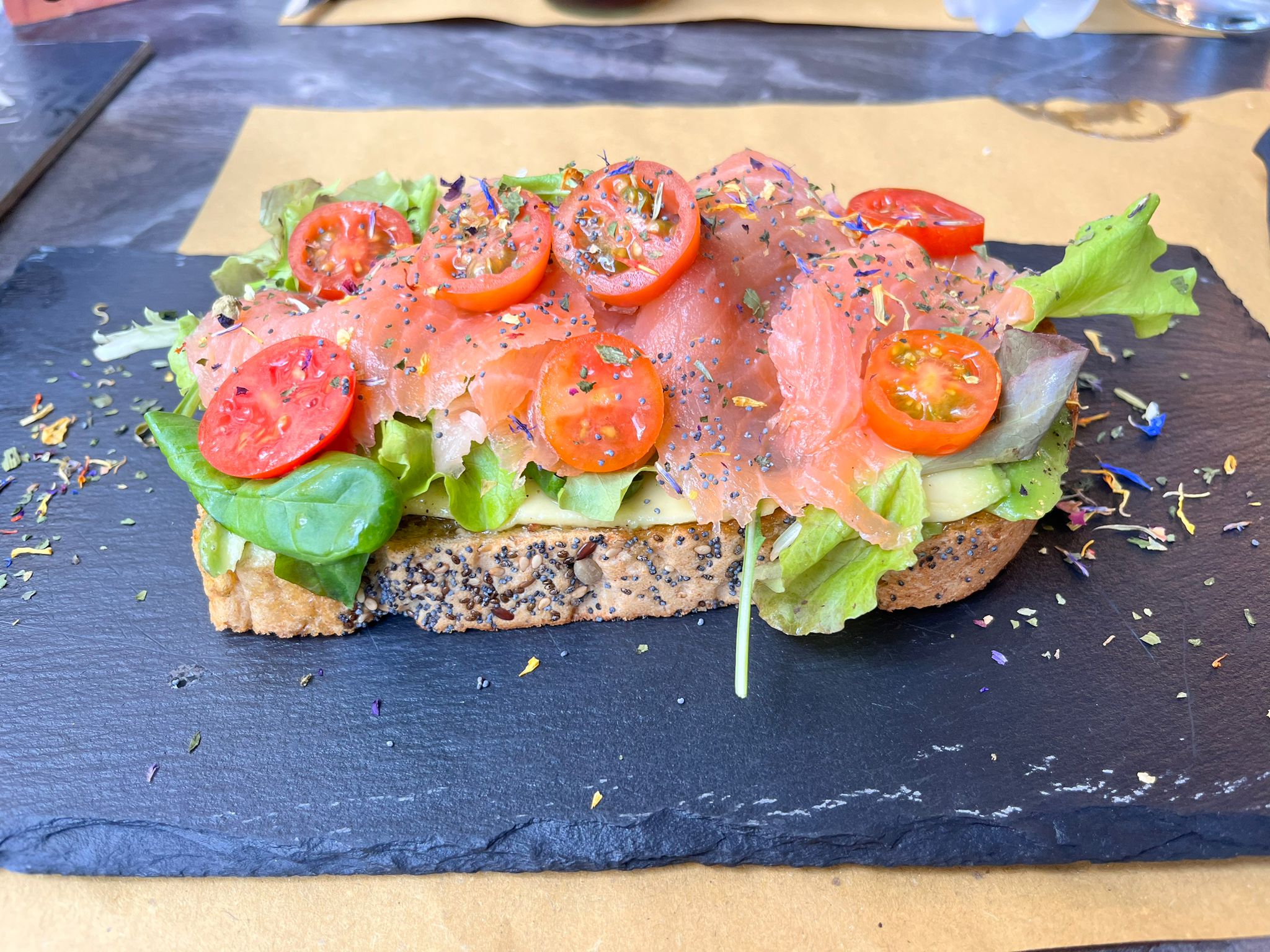 Nell’ orario di pranzo offre un vasto menù a base di piatti della cucina mediterranea.